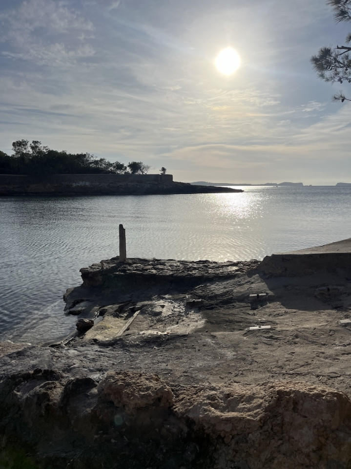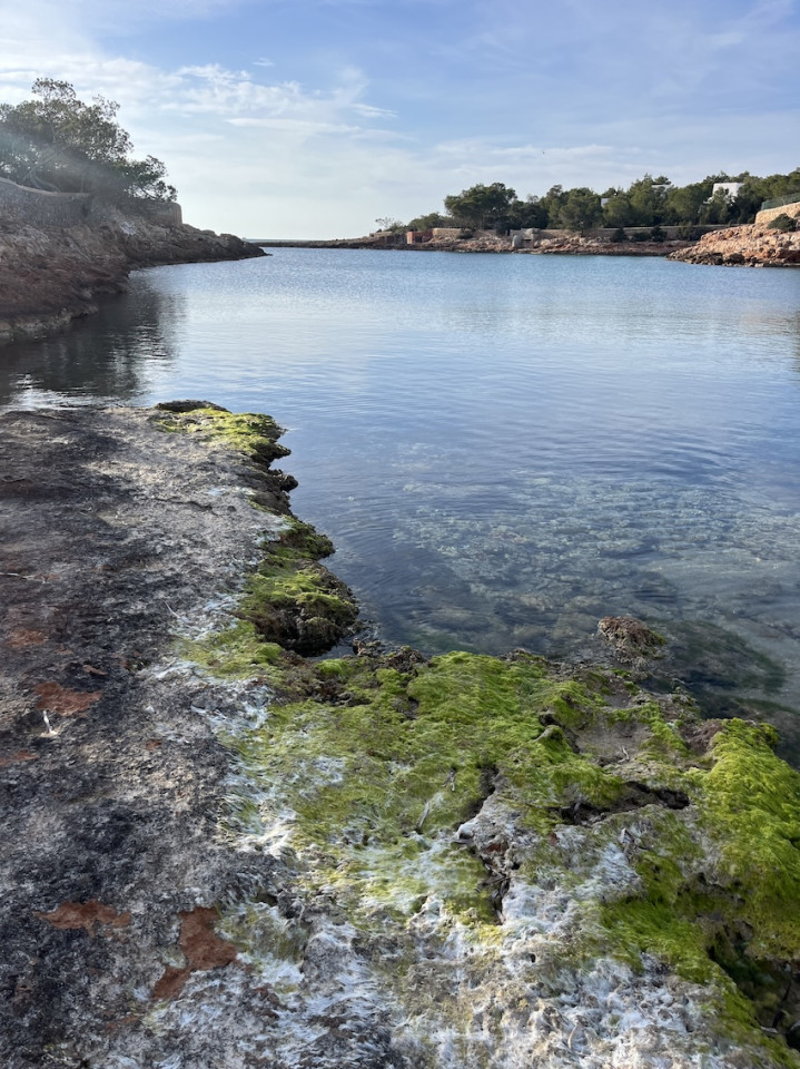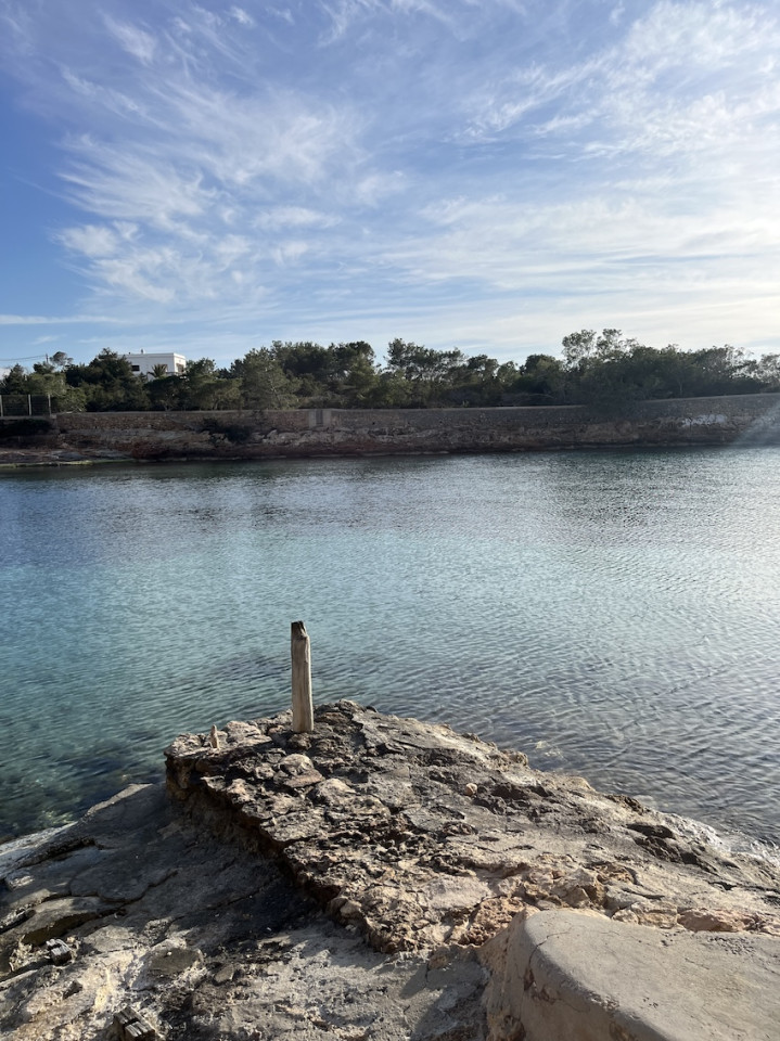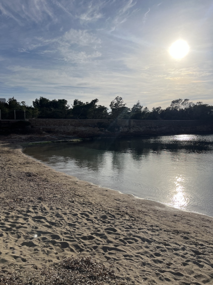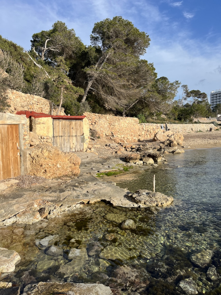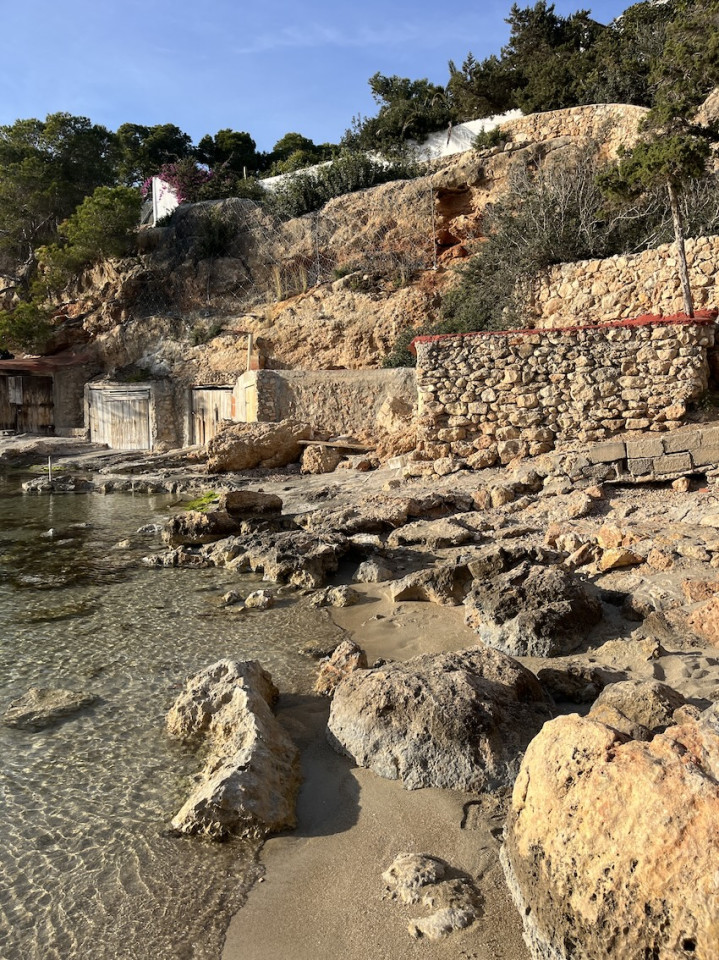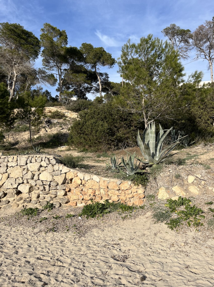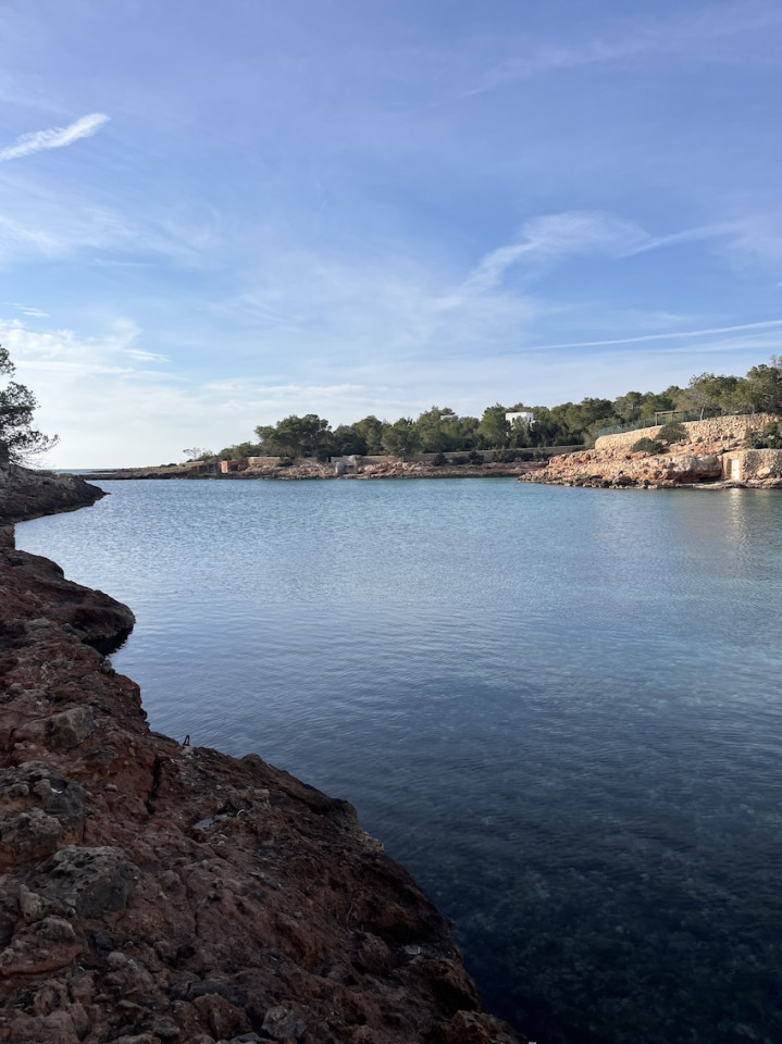 Cala Gració is a charming cove near San Antonio, Ibiza, known for its calm, turquoise waters and soft golden sand. Surrounded by lush pine trees and rocky cliffs, it offers a tranquil and picturesque setting, with shallow clear waters and stunning sea views.