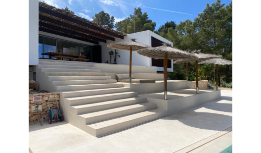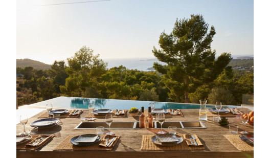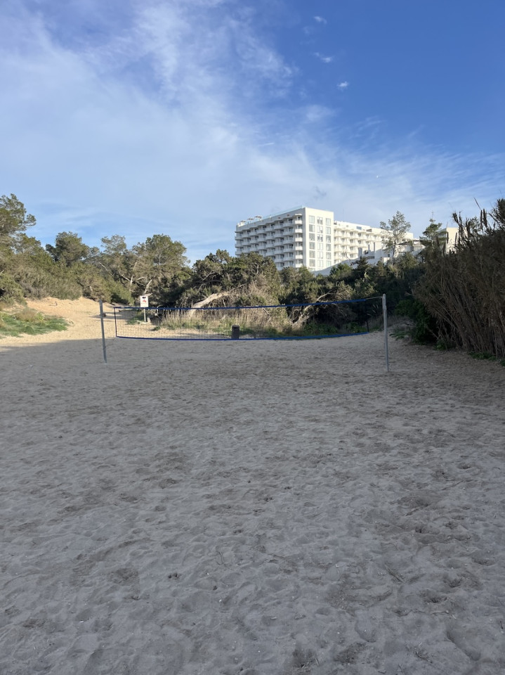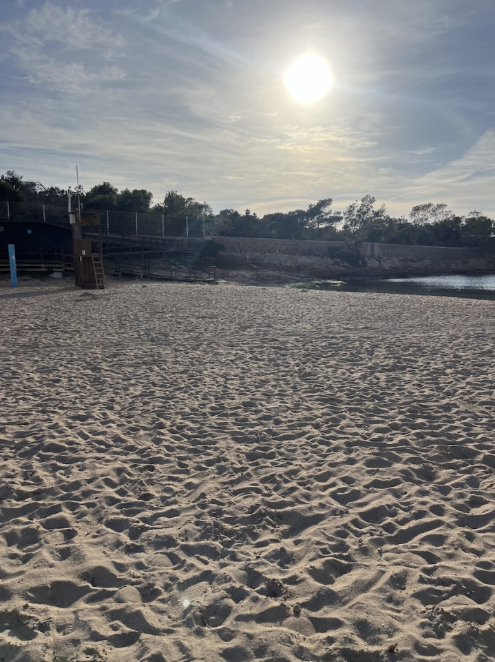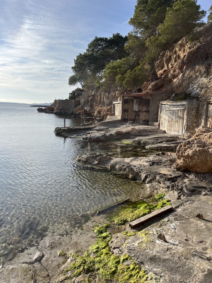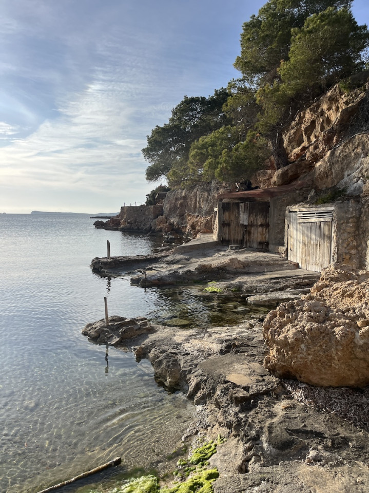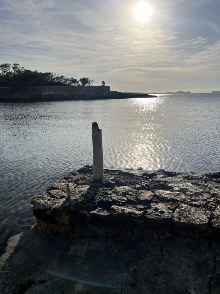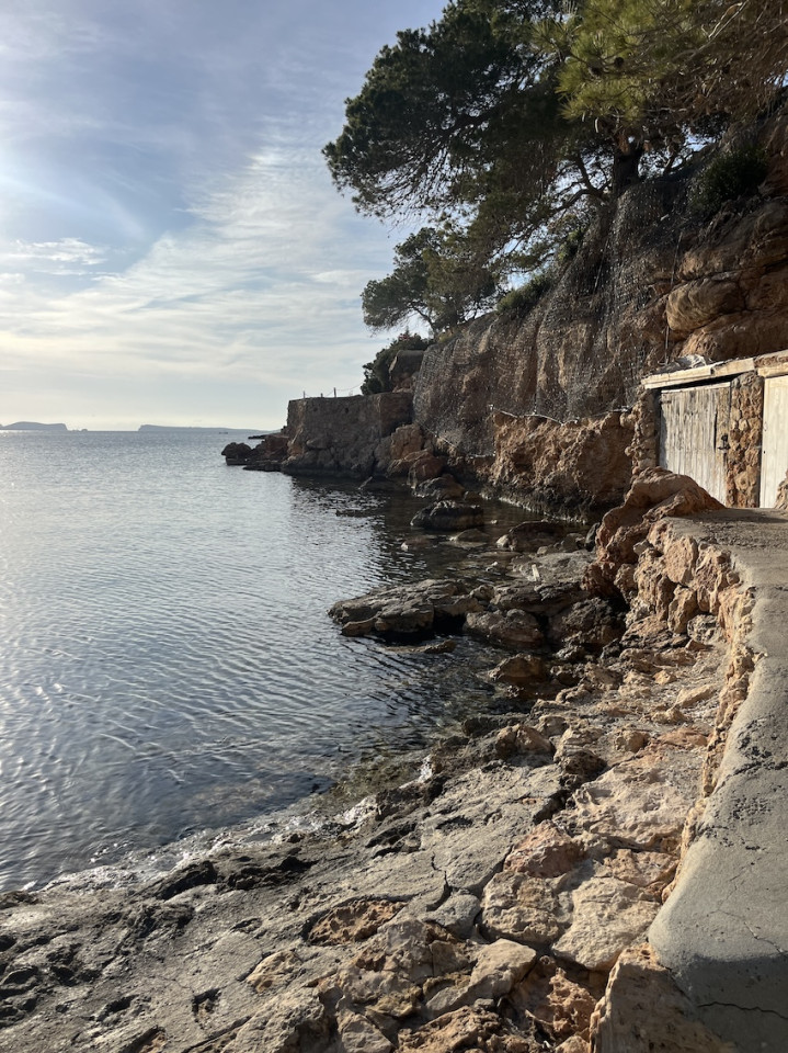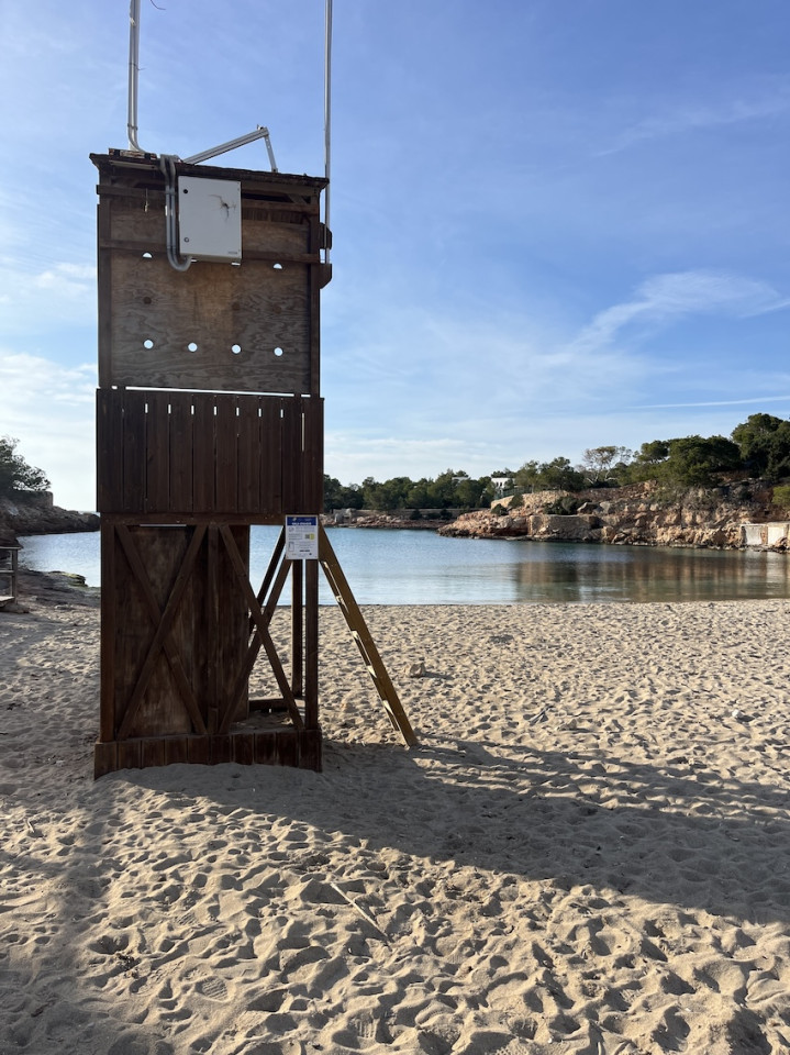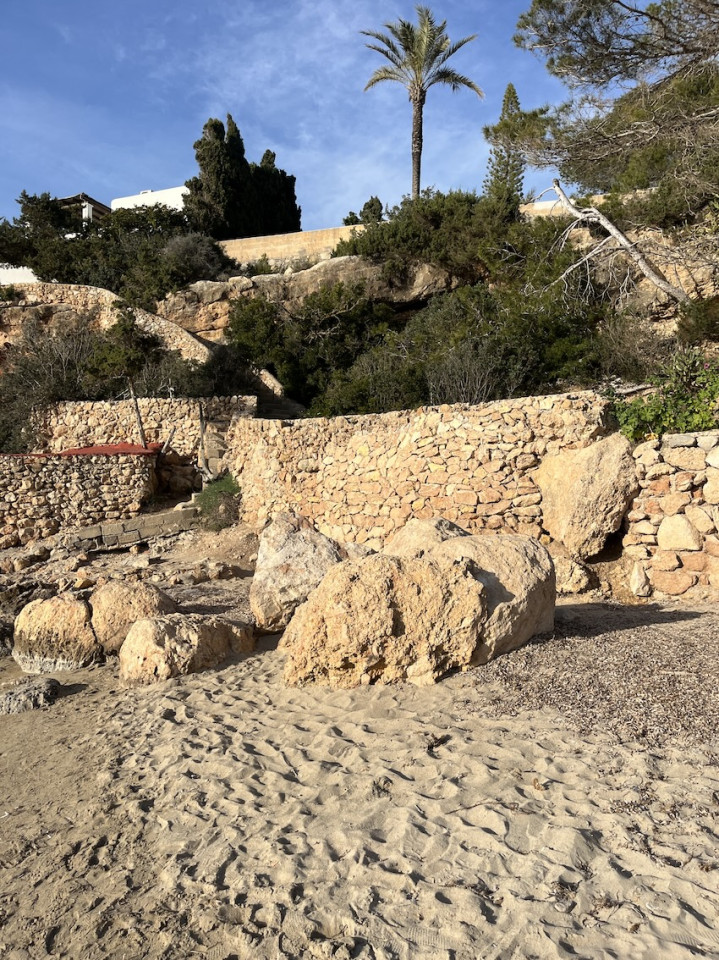 Cala Gració is a charming cove near San Antonio, Ibiza, known for its calm, turquoise waters and soft golden sand. Surrounded by lush pine trees and rocky cliffs, it offers a tranquil and picturesque setting, with shallow clear waters and stunning sea views.
