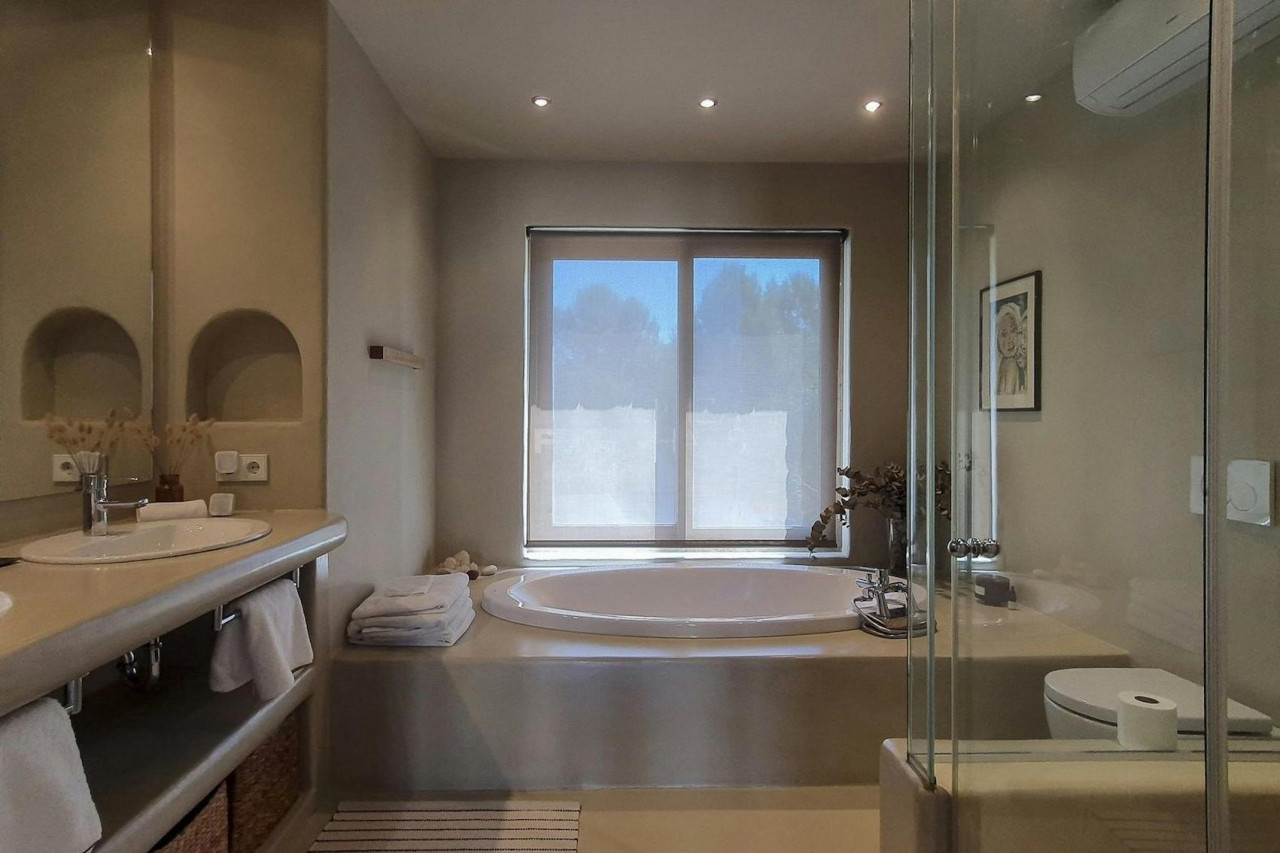 This countryside residence is hidden away in woodland, about 20 minutes (drive) from Ibiza Town. The villages of Santa Eulalia and Santa Gertrudis are a 10-minute drive away from the villa, via winding