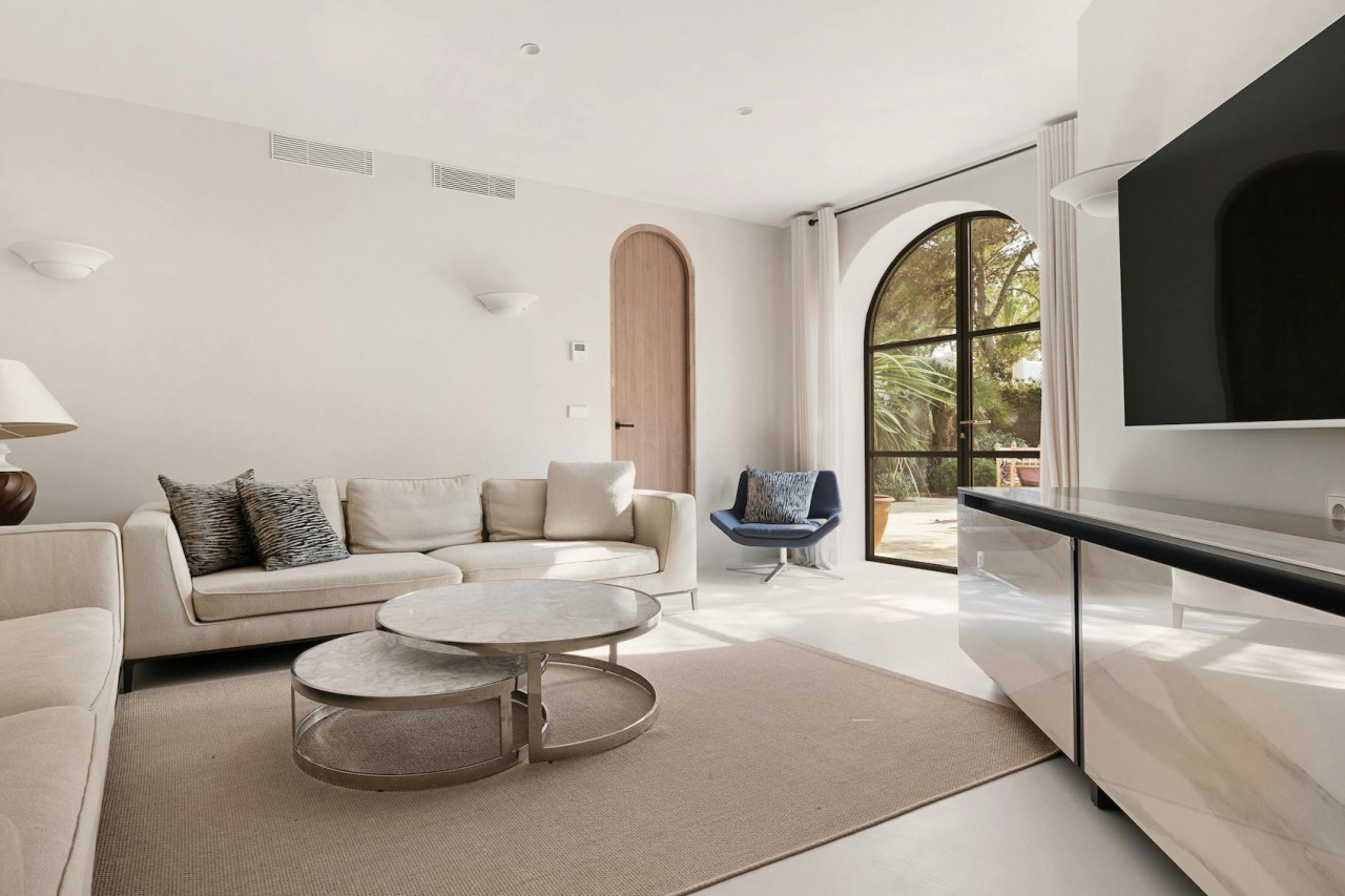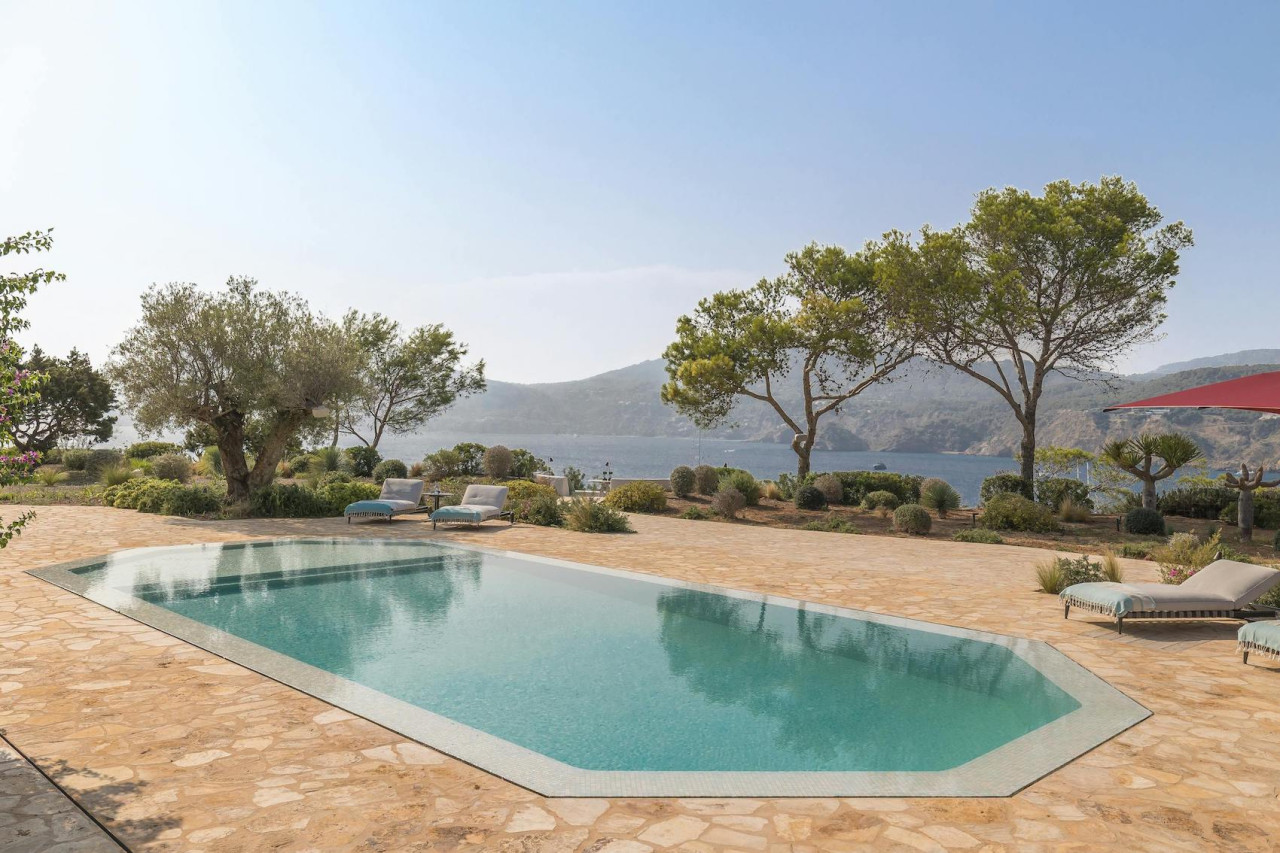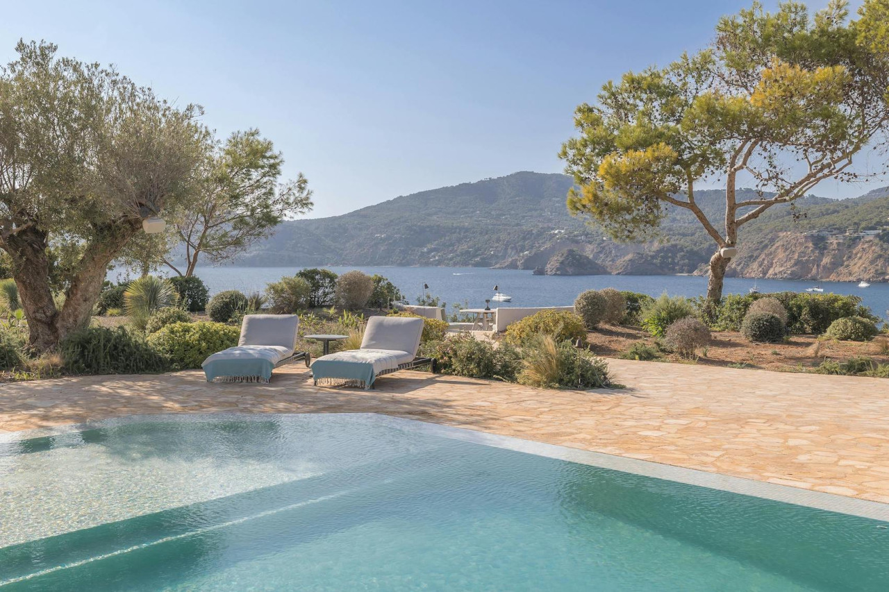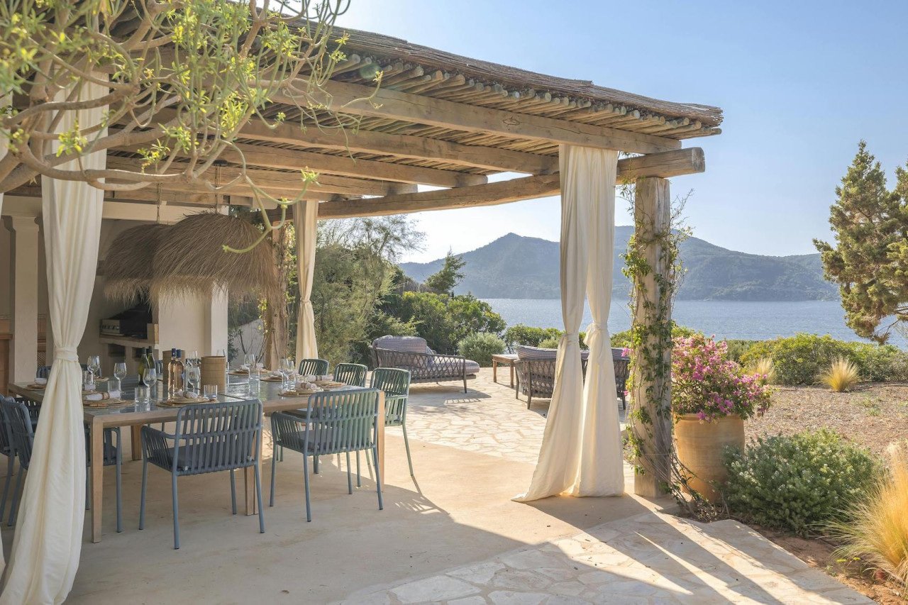 Perched on Ibiza`s exclusive Porroig coastline, this elegant villa features five beautifully appointed bedrooms, a private casita, and versatile spaces designed for both relaxation and productivity. Highlights include serene lounges, a cosy TV room, a kid-friendly en-suite bedroom, and an office with a sea-view terrace.