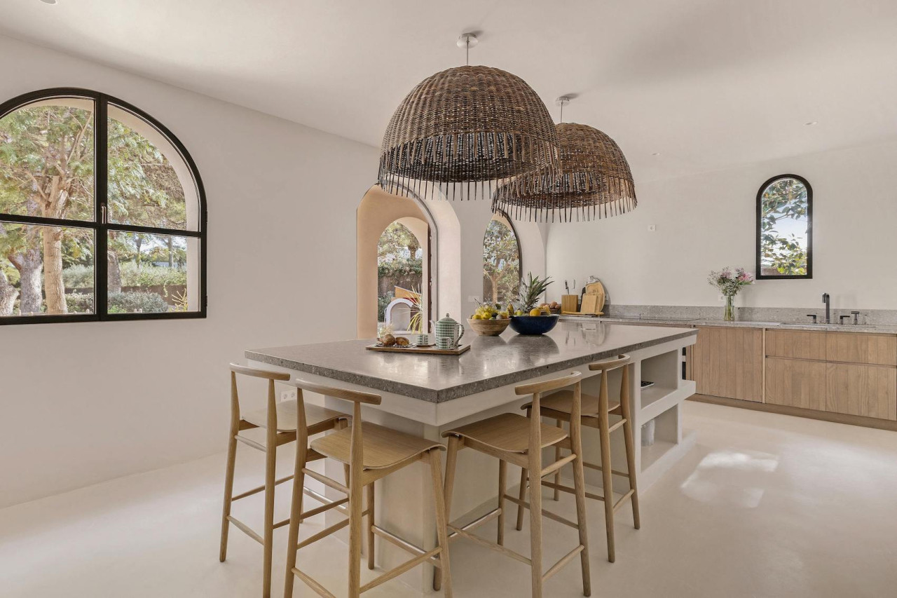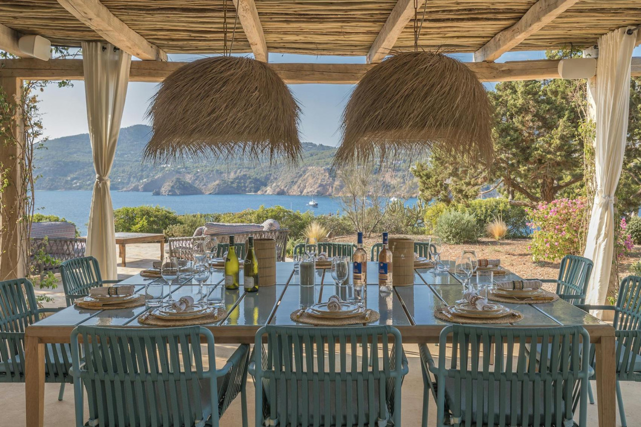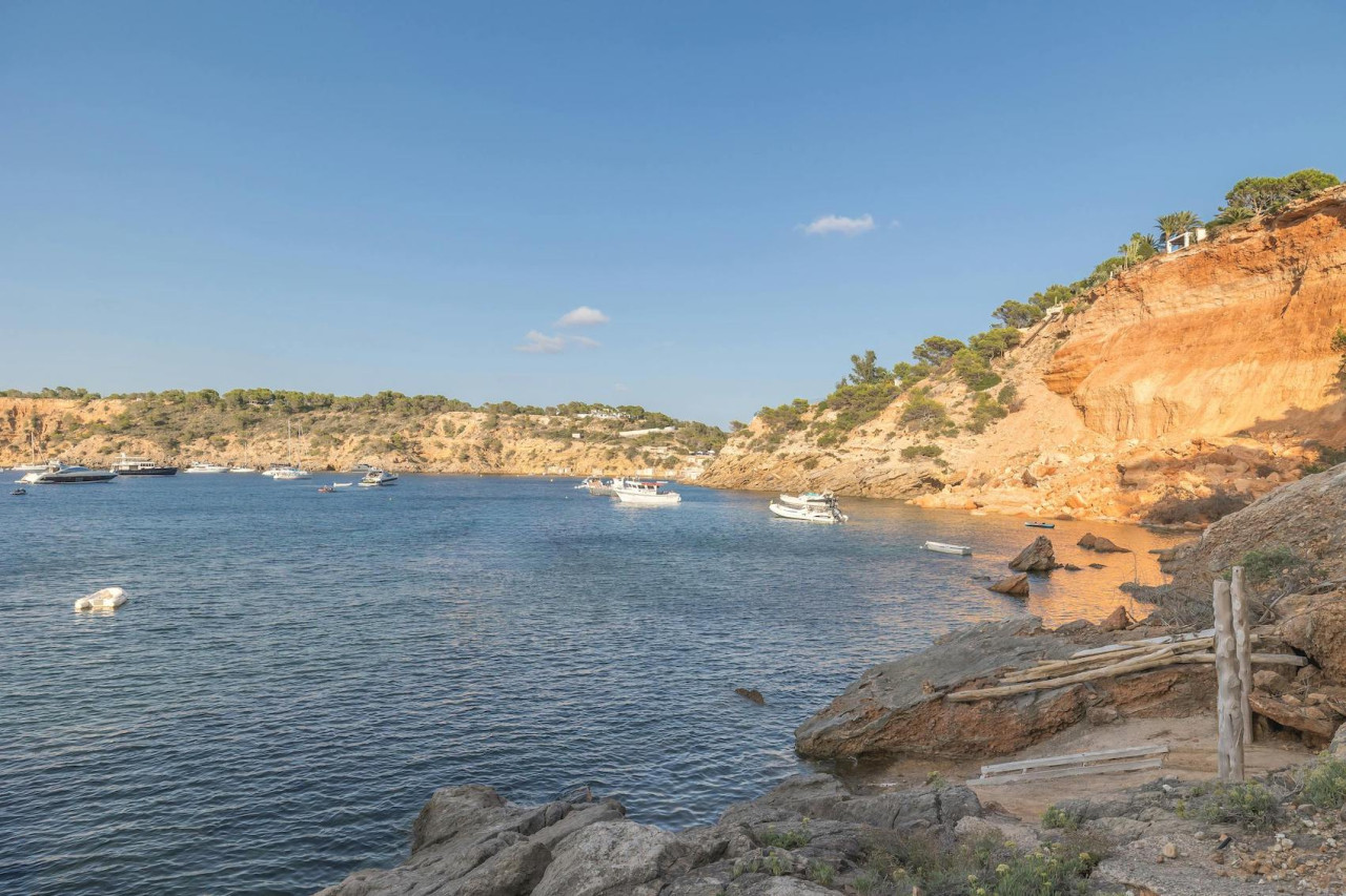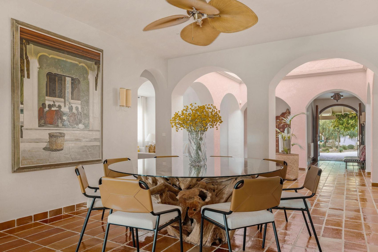 Perched on Ibiza`s exclusive Porroig coastline, this elegant villa features five beautifully appointed bedrooms, a private casita, and versatile spaces designed for both relaxation and productivity. Highlights include serene lounges, a cosy TV room, a kid-friendly en-suite bedroom, and an office with a sea-view terrace.