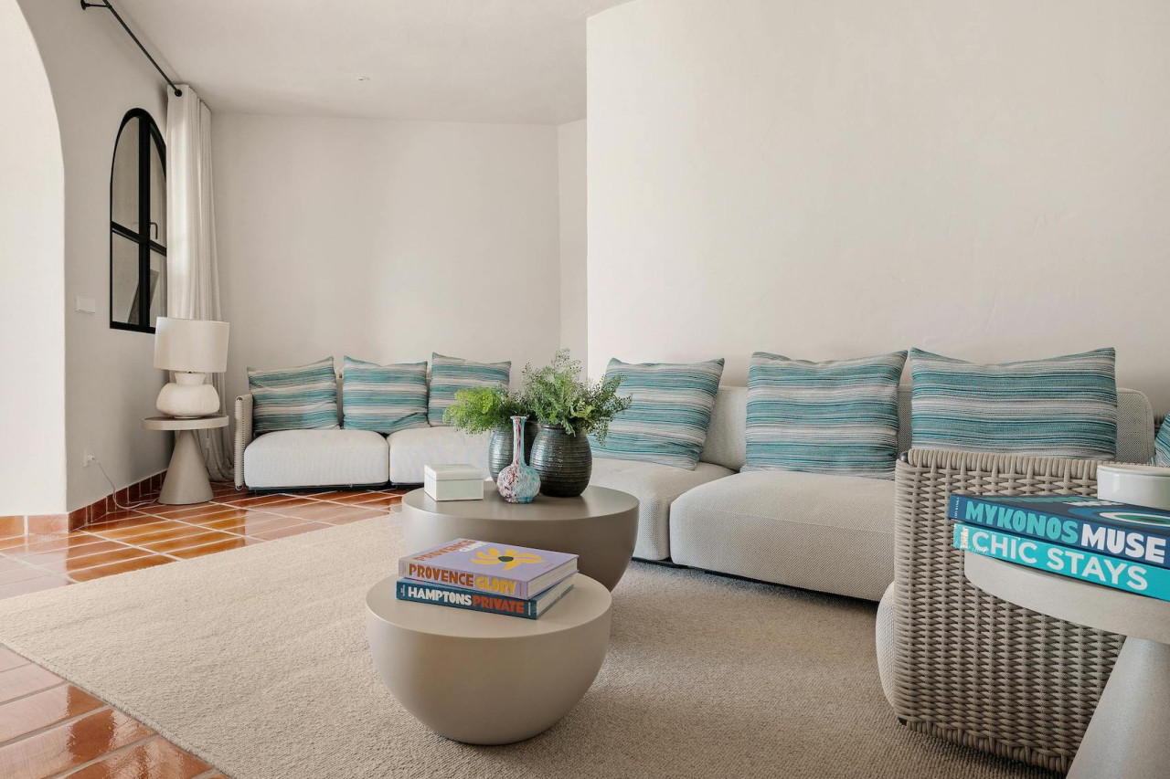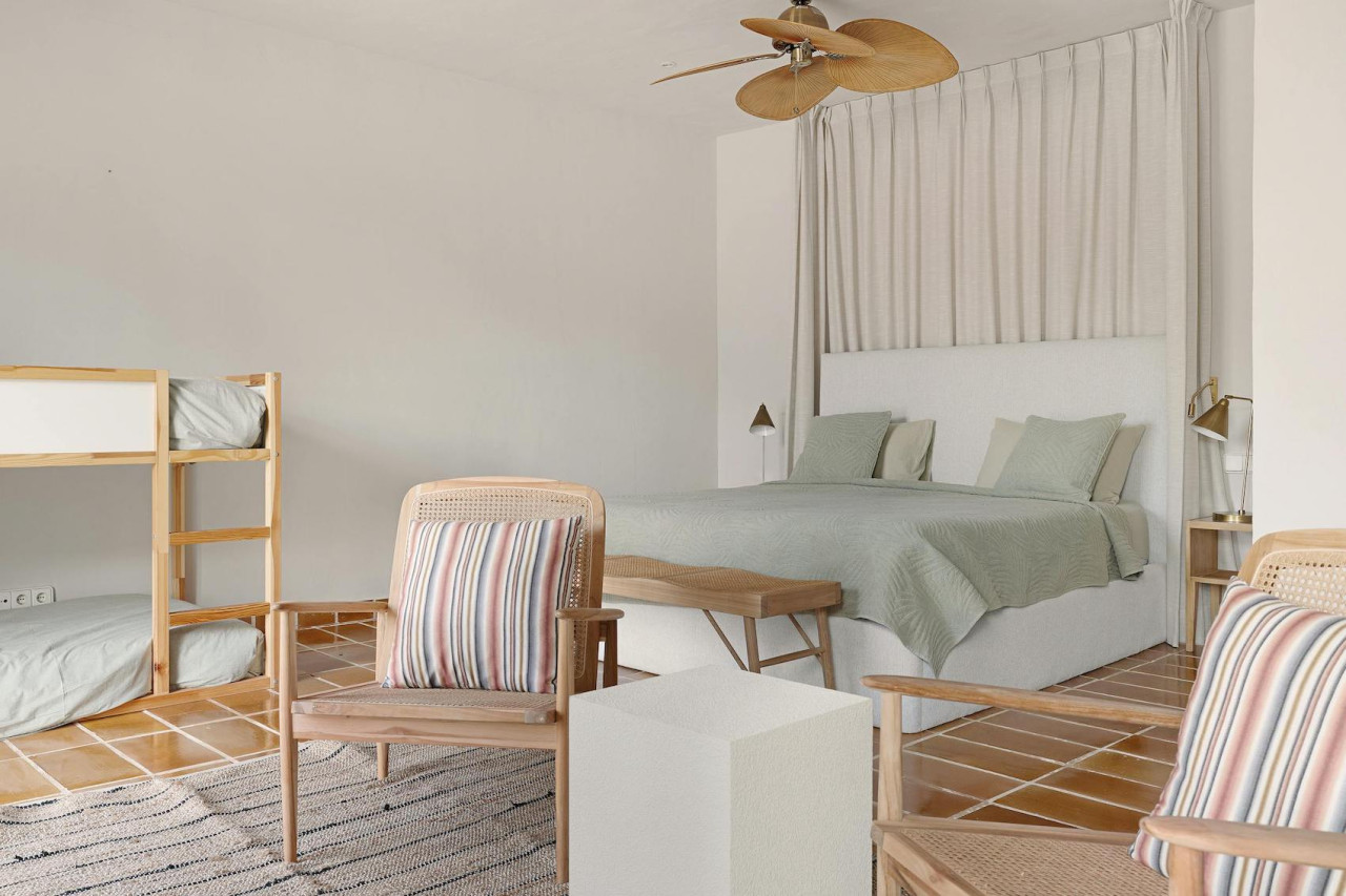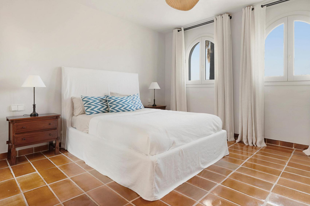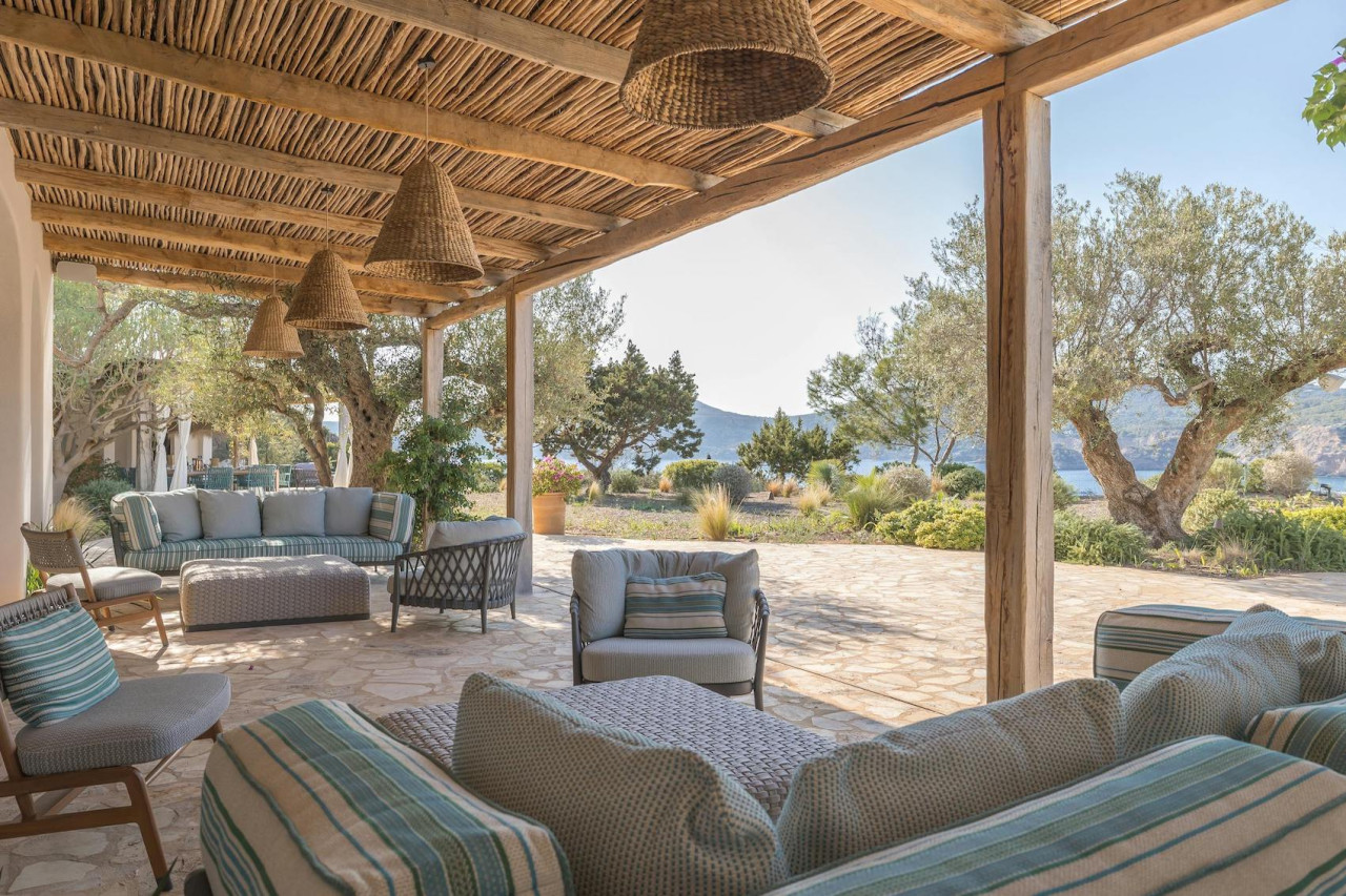 Perched on Ibiza`s exclusive Porroig coastline, this elegant villa features five beautifully appointed bedrooms, a private casita, and versatile spaces designed for both relaxation and productivity. Highlights include serene lounges, a cosy TV room, a kid-friendly en-suite bedroom, and an office with a sea-view terrace.