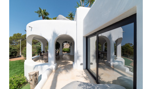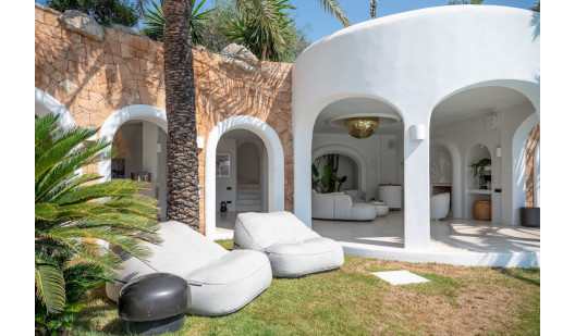 An elegant Mediterranean villa set between the imposing cliffs of Es Cubells and the vast Ibizan sea.