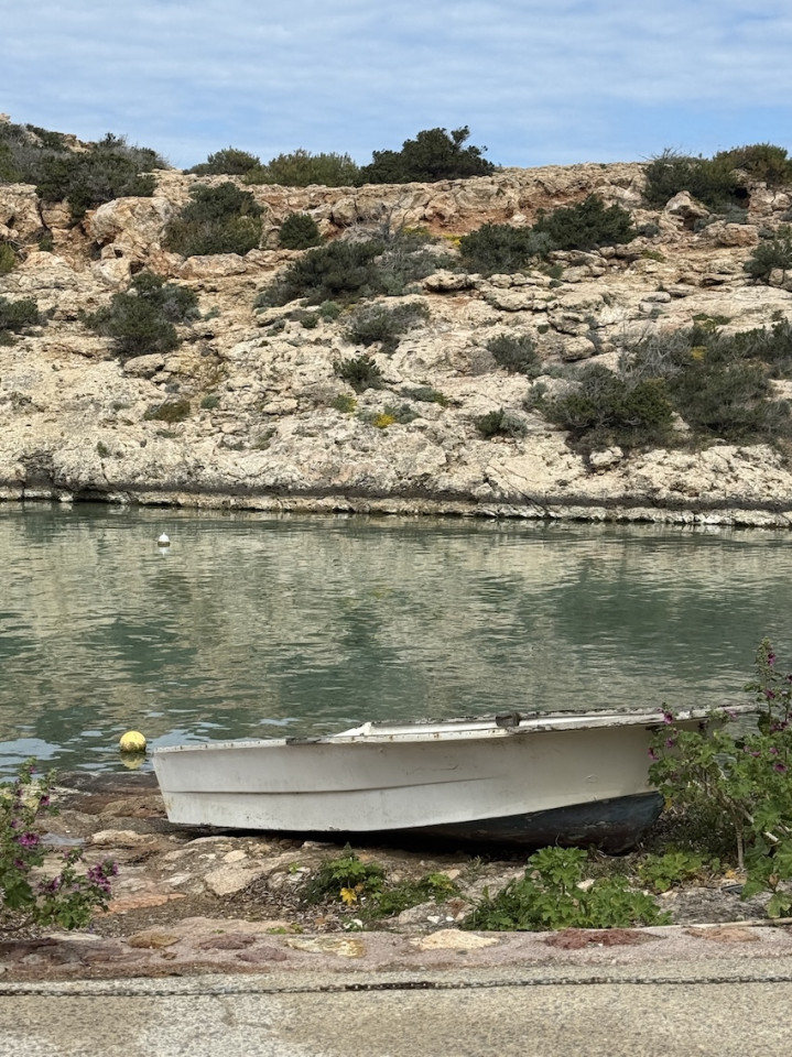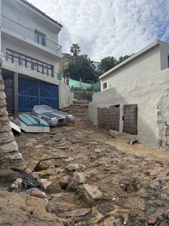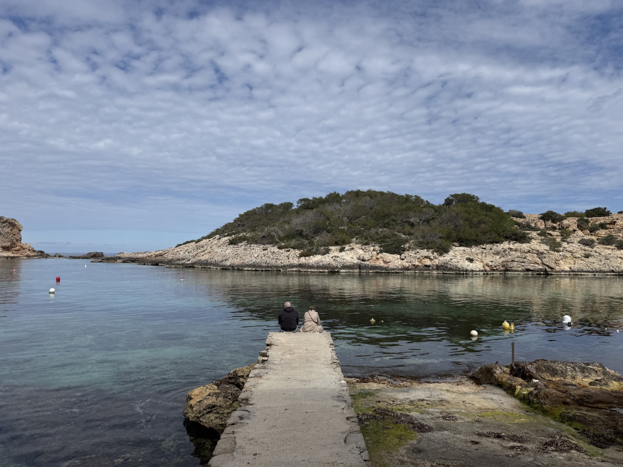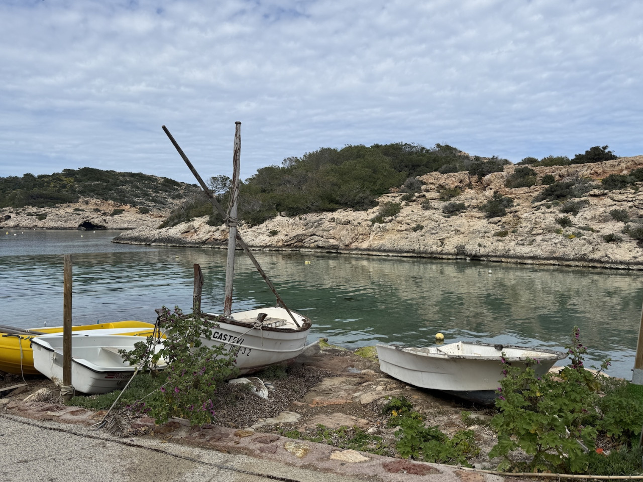 Located in the northern part of Ibiza, this coastal area features clear turquoise water, soft golden sand, and shallow bathing zones. The bay is framed by gentle hills and Mediterranean vegetation, creating a contained shoreline with open views toward the sea. The beach itself is relatively compact, with calm waters and a gradual entry into the sea. The surrounding landscape of low hills and greenery forms a natural backdrop, while the sandy shoreline and shallow water provide a clean coastal setting.