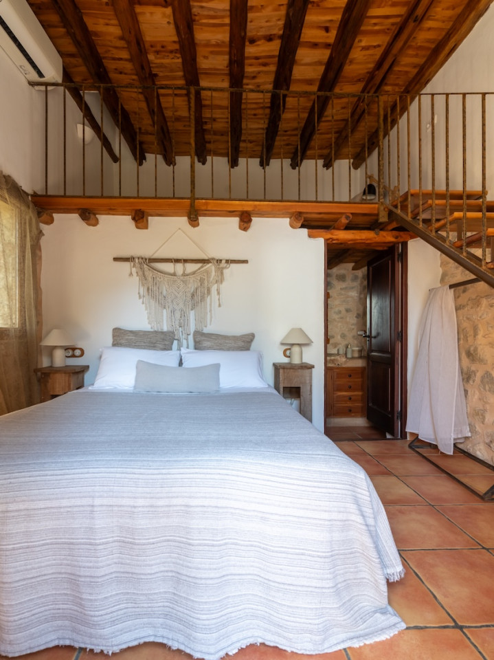 All the luxury of a hotel all the character of your own house on the island of ibiza, away from the hustle and bustle, there is a mountain getaway hidden in the heart of a pine forest. 3 fincas on a 16.000 sqm, designed for those looking for a regenerative experience, immersed into the nature, silence and spirituality. simple and elegant, all the villas feature a traditional ibizan style, inviting you to feel the original soul of the island. the two salt water pool and the recreational areas, including an outdoor yoga area, cinema and bar will make your stay one of a kind. can bet is the perfect property to welcome your private events including weddings and retreats.