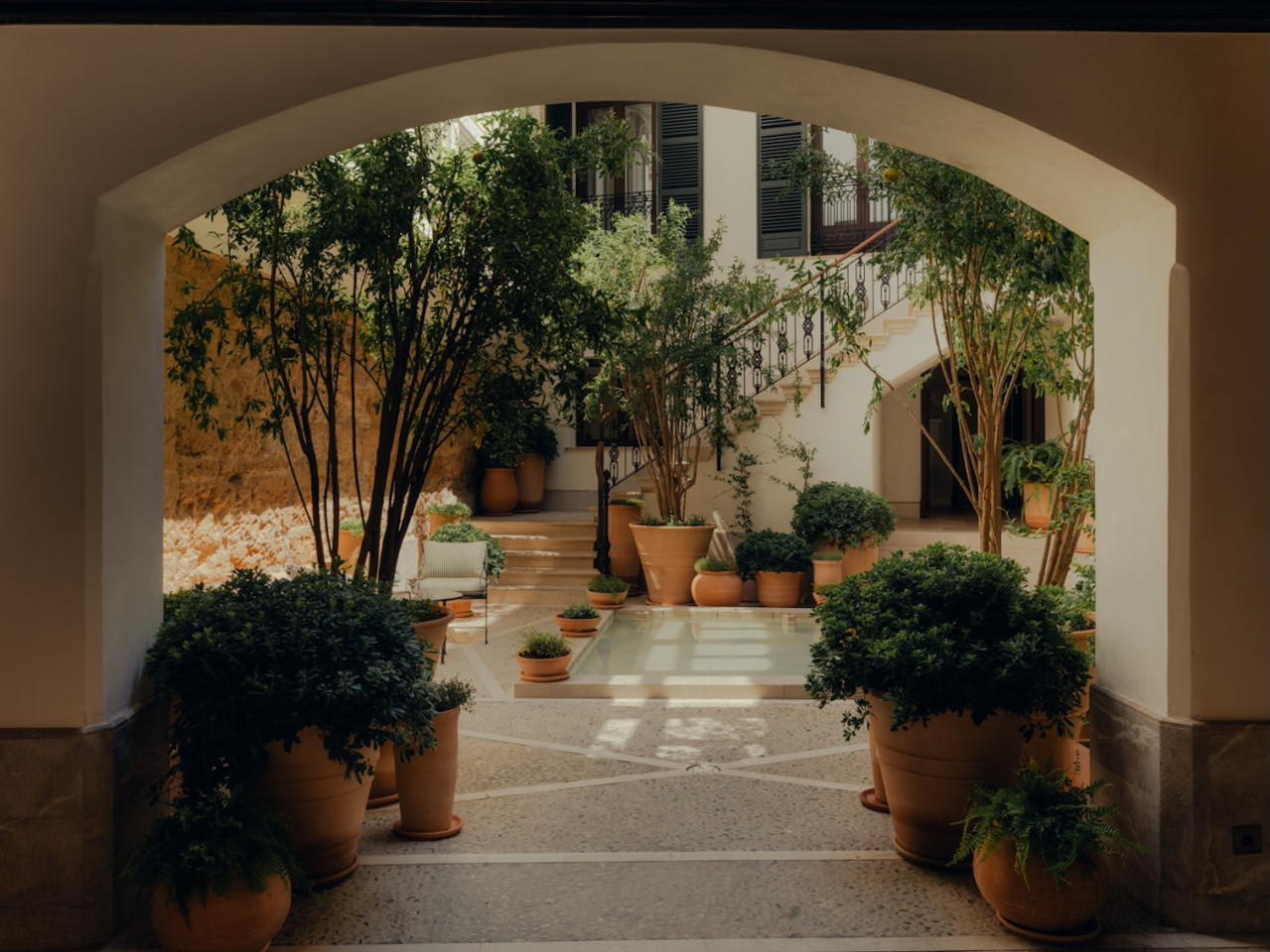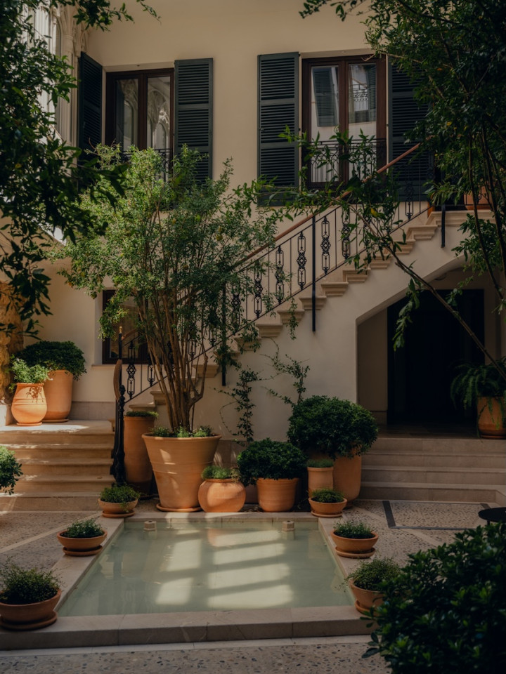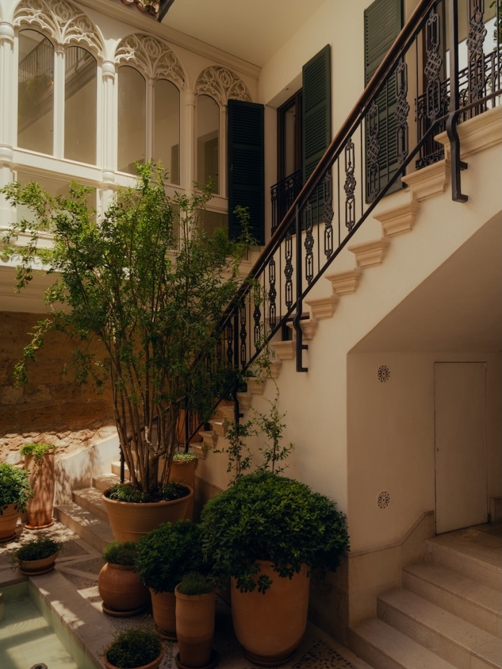 The building is built around a lushly landscaped patio, a haven of peace amid Palma's hustle