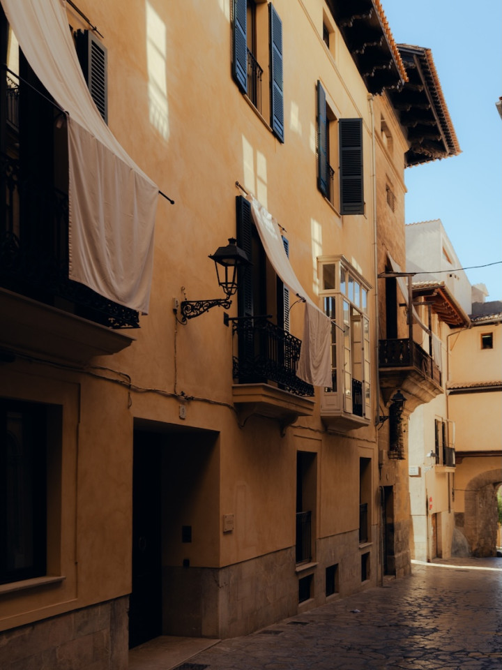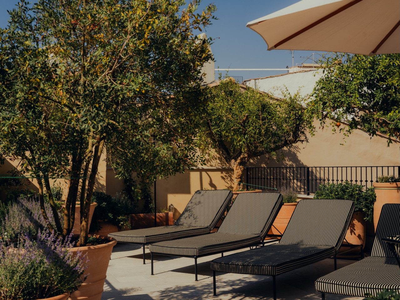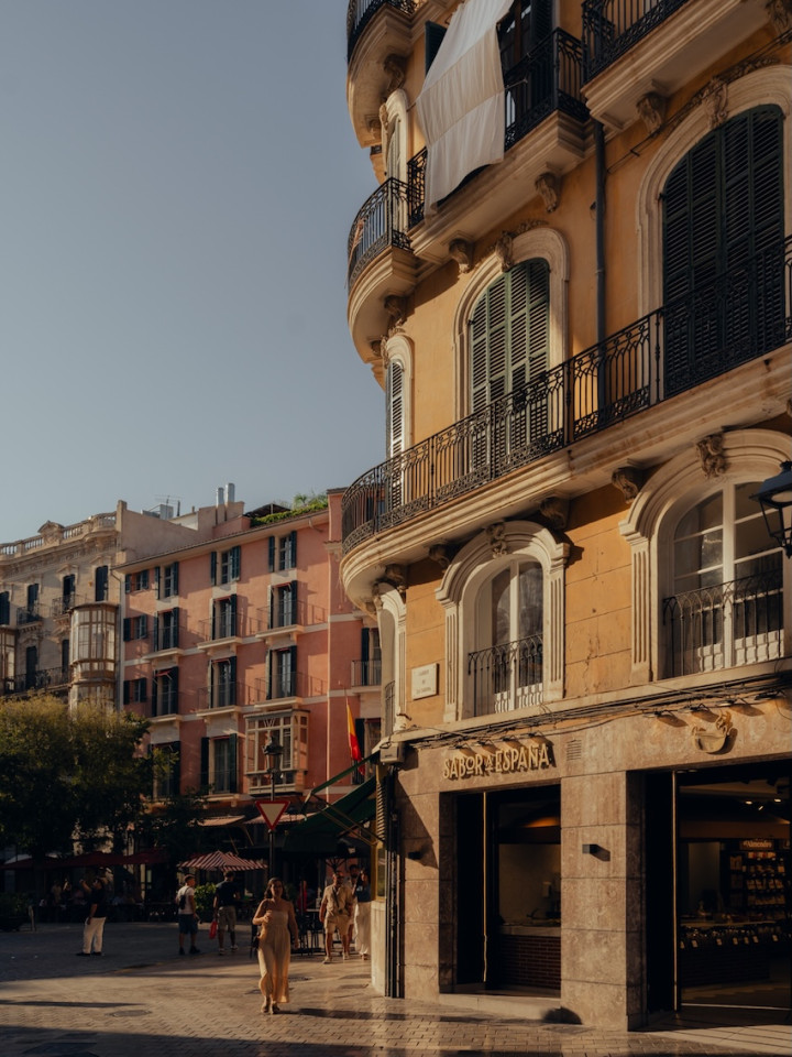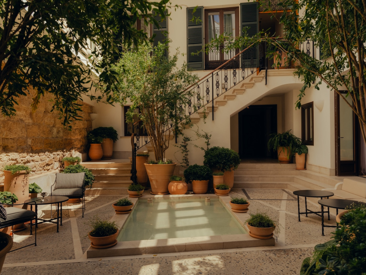 The building is built around a lushly landscaped patio, a haven of peace amid Palma's hustle