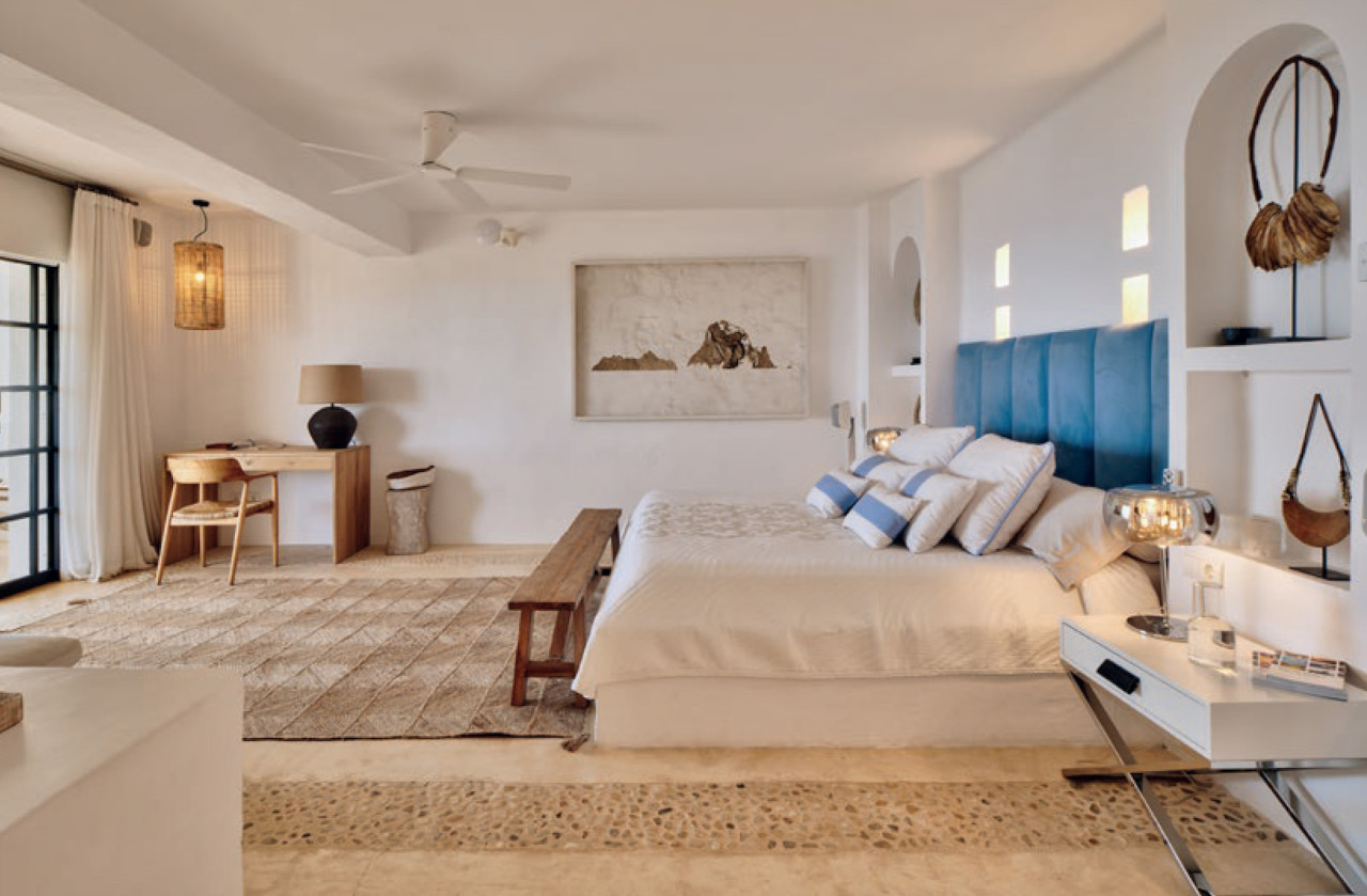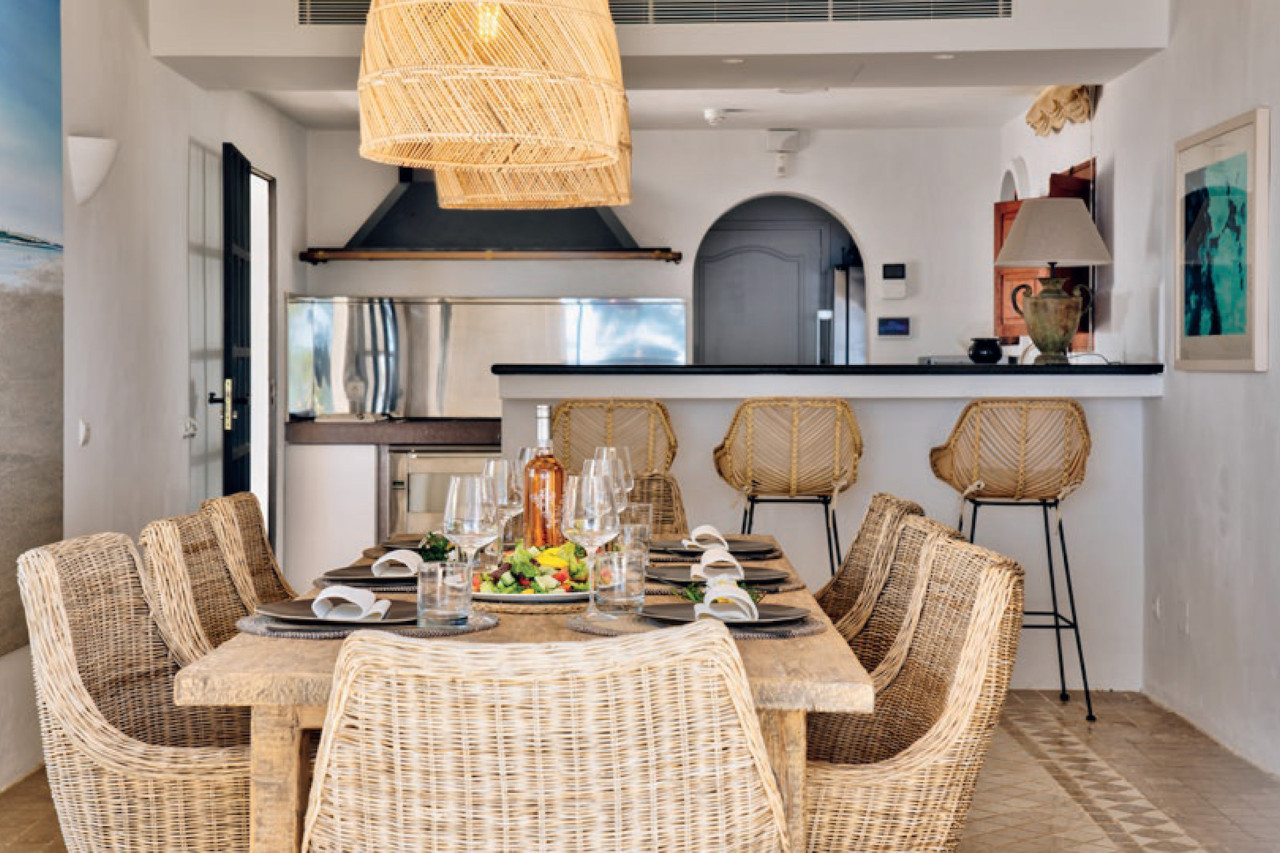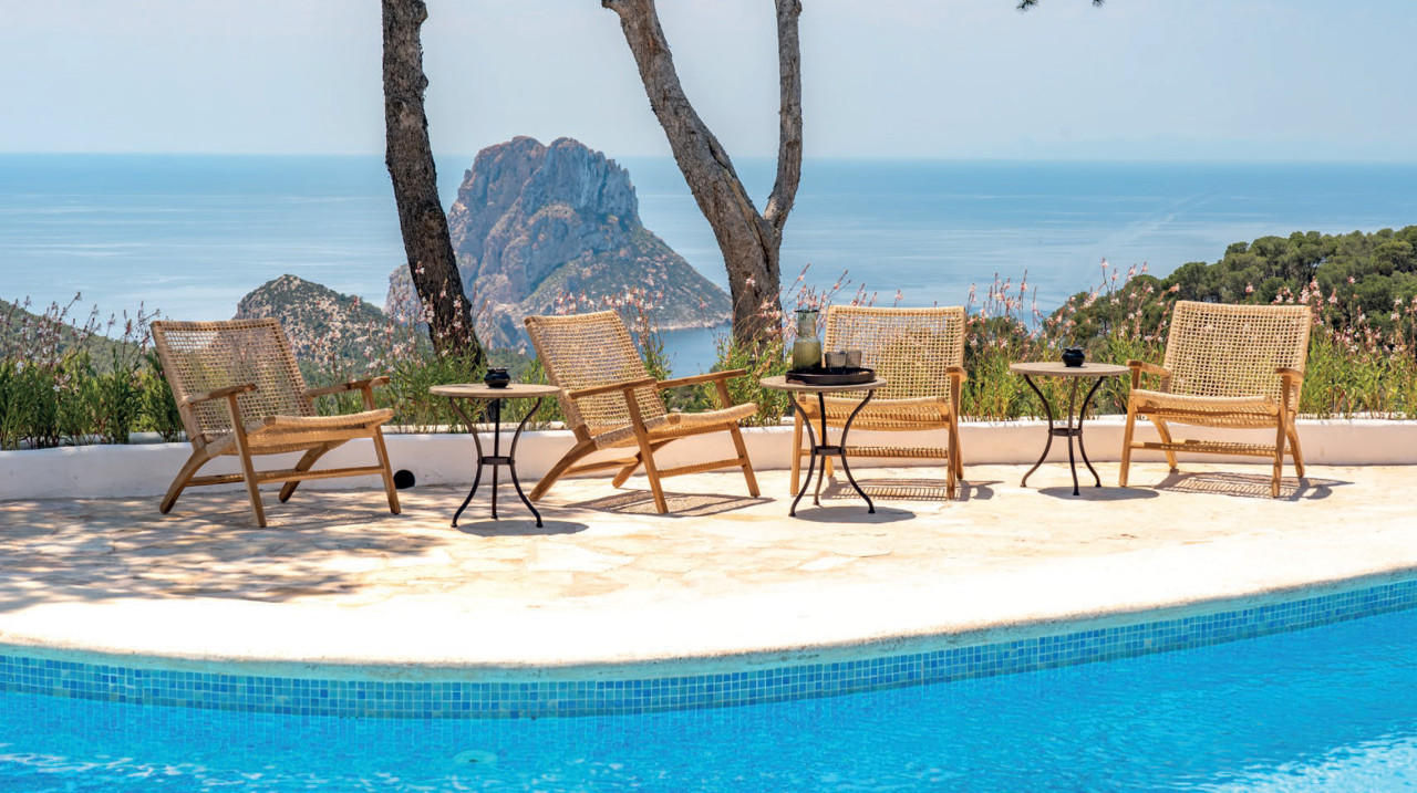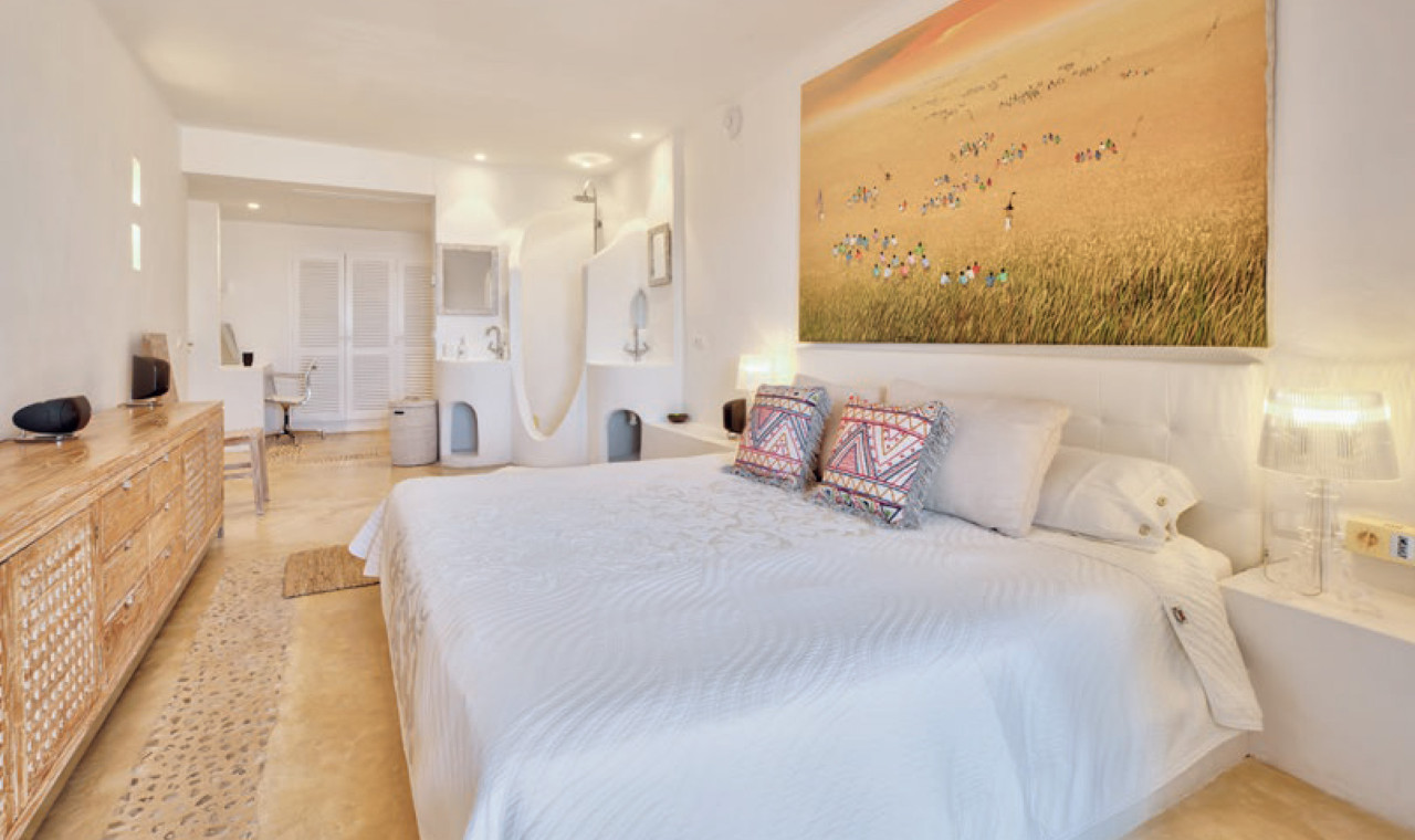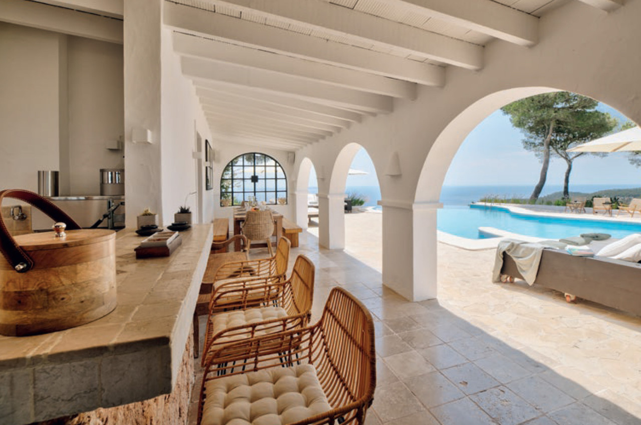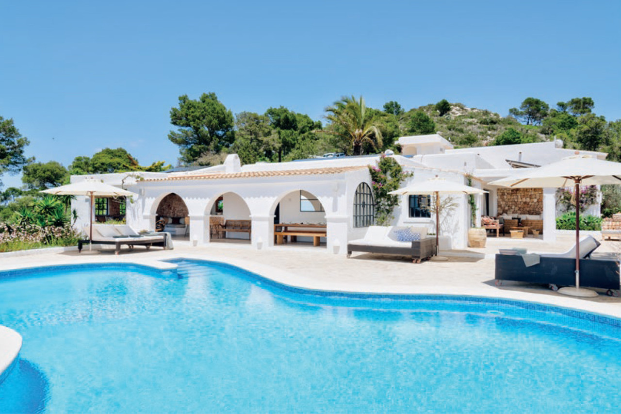 This breathtaking property is set 400 meters high, on one of Ibiza’s highest peaks, offering spectacular panoramic sea-views from Salinas to Cala D’Hort. Surrounded by a pristine pine forest, the perfect location to enjoy a peaceful holiday in a luxurious island home with breath taking sunrise and sunset views. The property is comprised of the main villa and a separate two-bedroom guest annex, both designed with the island’s classical architecture as focus, and with a unique setting providing one of the best 300 degree views on the island stretching from Las Salinas via Formentera and Es Vedra towards the Spanish mainland 170 km away on the horizon. The simple and classical style combines stylish contemporary living with an authentic Ibizencan style.