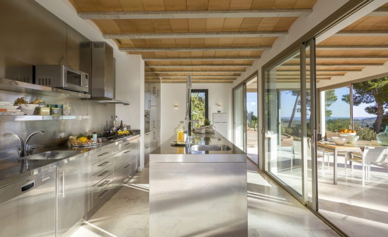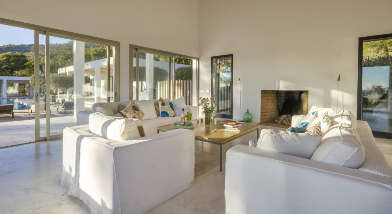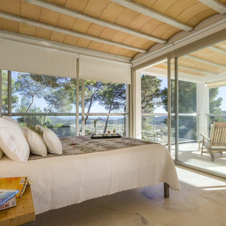 - Nestled high on the southern slopes of a valley of pine trees and rich, red fertile soil, sits the dazzling white Villa. Breathe deep and look east to views of where the ocean touches the sun. Yet its sleek modern form echoes the modular blueprint created by the early Phoenician settlers. Indeed many of the genius design strokes also have ancient roots, such as the ventilation, which takes the natural flow of the valley. Cleverly created in two sections for ultimate privacy as well as space, the main house is two storeys high and this is where you will find the spacious living areas as well as a master bedroom. Step outside and a single storey block of five en suite guest rooms sits adjacent to the L shaped swimming pool. Echoing the modernist vibe, inside the décor is all light and bright with an importance placed on impeccable craftsmanship and locally sourced pieces by the owners adding warmth. With the natural elements both outside and inside, this villa is the perfect retreat for groups of friends or your annual family gathering.