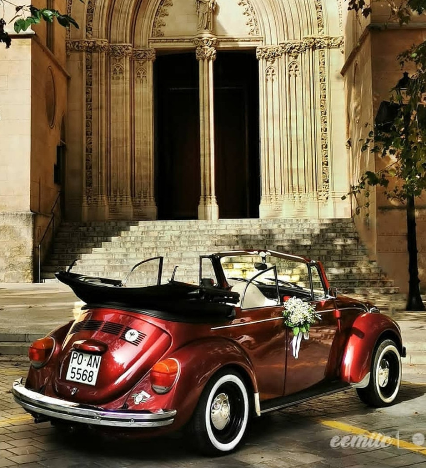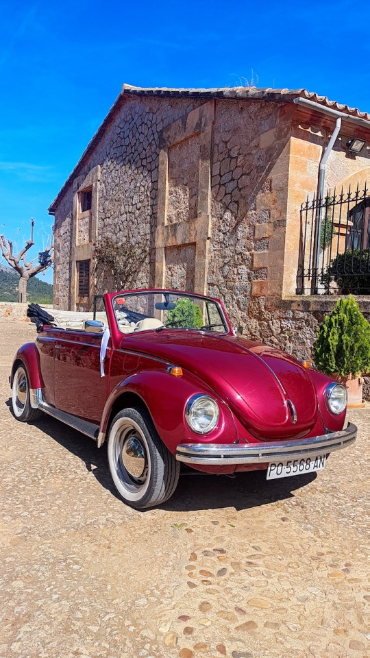 - The 1971 VW Beetle Cabrio in burgundy exudes classic charm with its smooth, rounded body lines and distinctive retro appeal. The deep burgundy color enhances its vintage character, while the convertible top adds a sense of freedom and style. Chrome accents on the bumpers and side mirrors provide a touch of elegance, contrasting with the vibrant, timeless paint. The circular headlights and minimalist design evoke a nostalgic, iconic look that makes this Beetle a standout, especially with the top down, capturing the essence of a 1970s open-road cruiser.